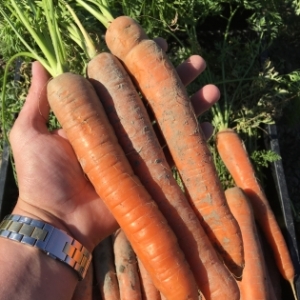 قطرها 3 سم، وزنها 80-110 جرام، لونها برتقالي جميل. يبرز الجزر قليلاً فوق سطح