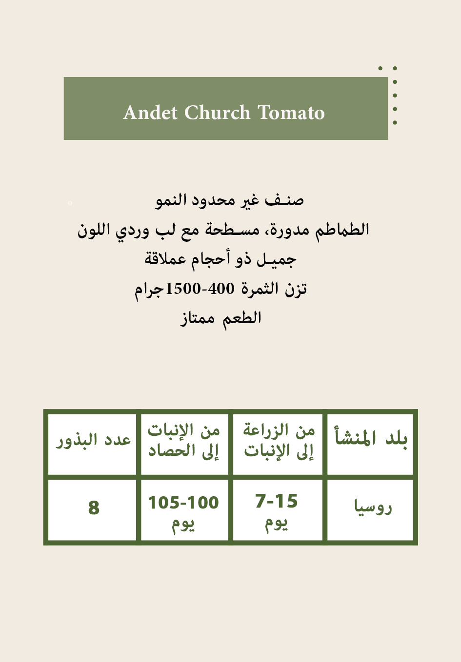 عدد البذور في المغلف: 7 بذور