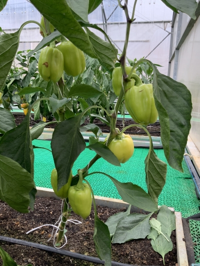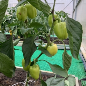 التوريق، يصل ارتفاعه إلى 1 متر، الفلفل في النضوج التقني أخضر فاتح، في