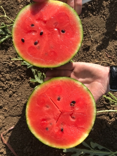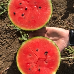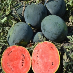 مستديرة ، خضراء داكنة اللون مع خطوط بالكاد مرئية. يبلغ سمك اللحاء 2-3 مم، حمراء اللون من الداخل ومحتوى العصير عالي،