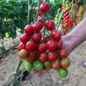 مجموعة الطماطم العنقودية. من الإنبات إلى الحصاد الأول 90-95 يومًا. الثمار