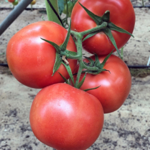 يوم. النبات قوي، طماطم دائرية الشكل، وزنها 250-300 جرام، كثيفة، ناعمة، لونها