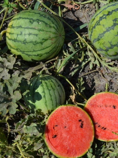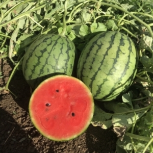 كجم. اللب كثيف ، كثير العصارة، أحمر غامق اللون، حلو، محتوى السكر الكلي لا