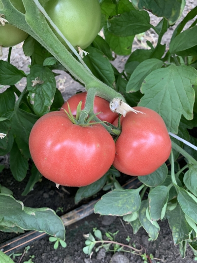 يوم. الثمار وردية اللون ، مستديرة ، مع مدببة من الأسفل، تزن 180-250 جرامًا،