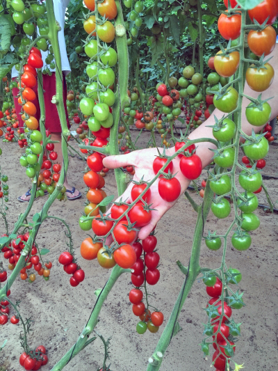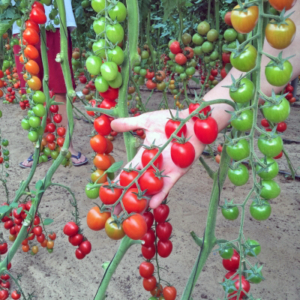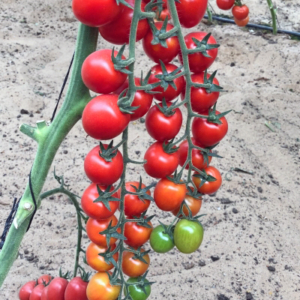 الطماطم العنقودي. النبتة متوسطة الحجم، مكونة من ساق أو ساقين. من الإنبات إلى