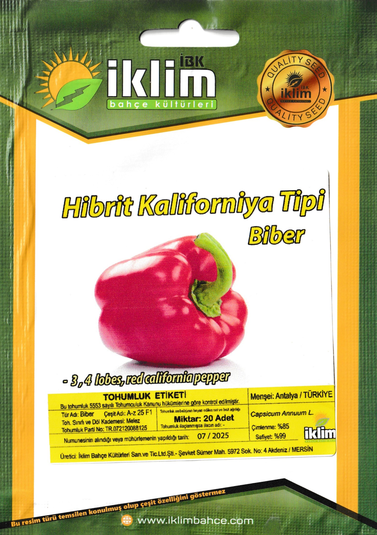 الوزن الصافي للبذور في المغلف: 20 بذرة فقط
