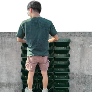 حوض قماشي مستطيل الشكل مع أعمدة دعم للمساعدة على تسلق النباتات ويسهل عملية تغطية الحوض الزراعي