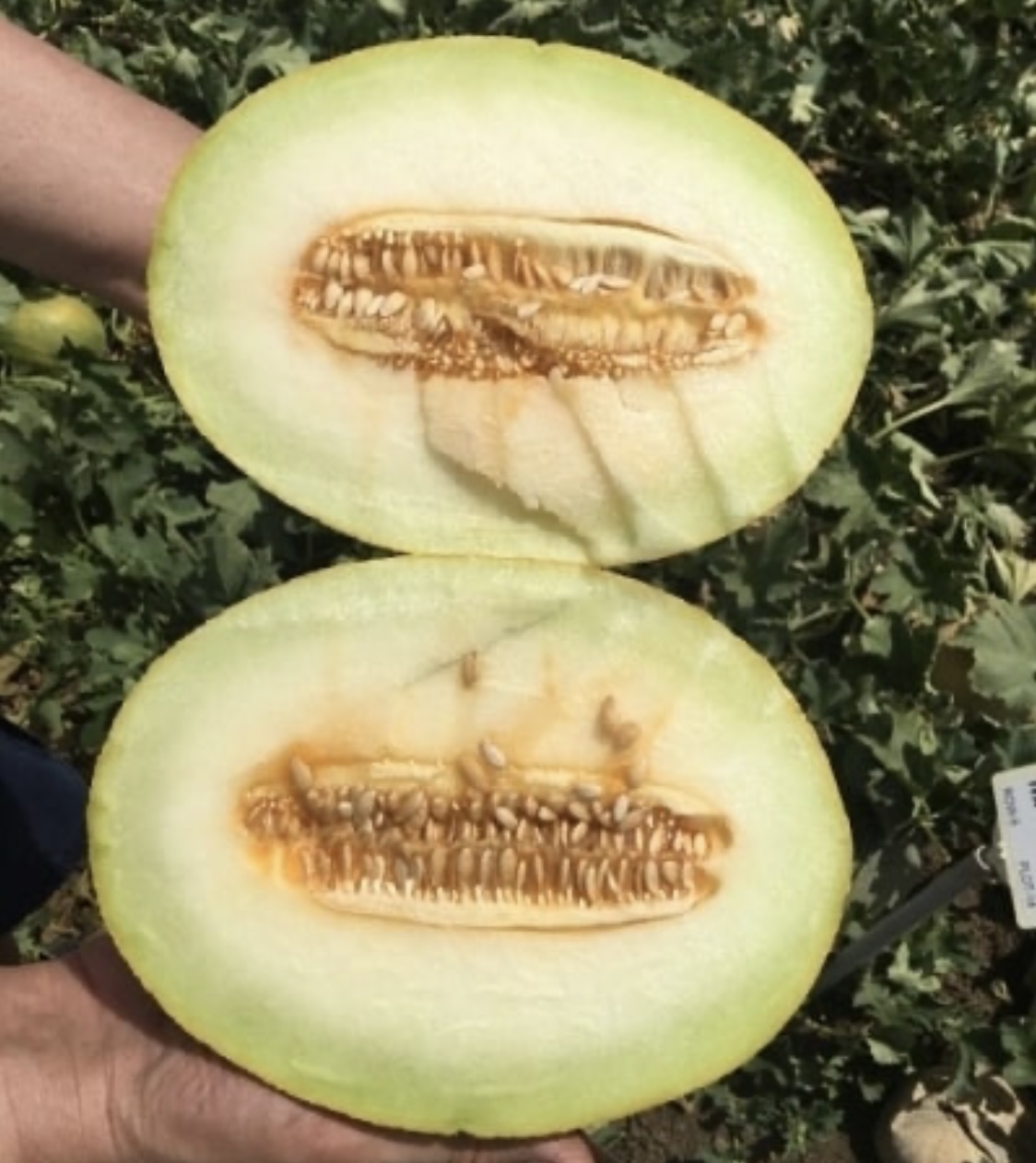الشمام بيضاوي، برتقالي اللون، يزن 2.5-3 كجم. اللب أبيض مخضر، يبلغ سمكه 4-6 سم،
