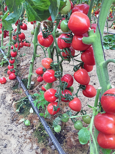 الثمار ودي. تحصد كثمار منفصلة أو بالحزمة. طعم الطاطم وتسويقها